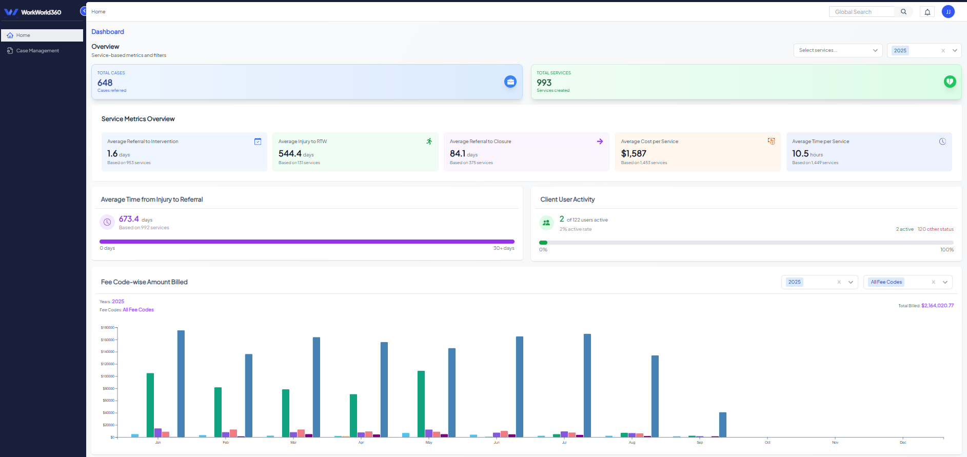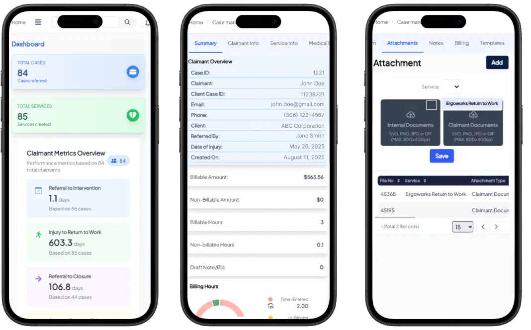 Access WorkWorld360 anytime, anywhere via secure cloud and mobile platforms. Whether in the office or on the go, users can view dashboards, upload documents, and manage cases without being tied to a desktop. Bridges Health handles hosting and updates, ensuring high uptime and seamless access to critical case data.